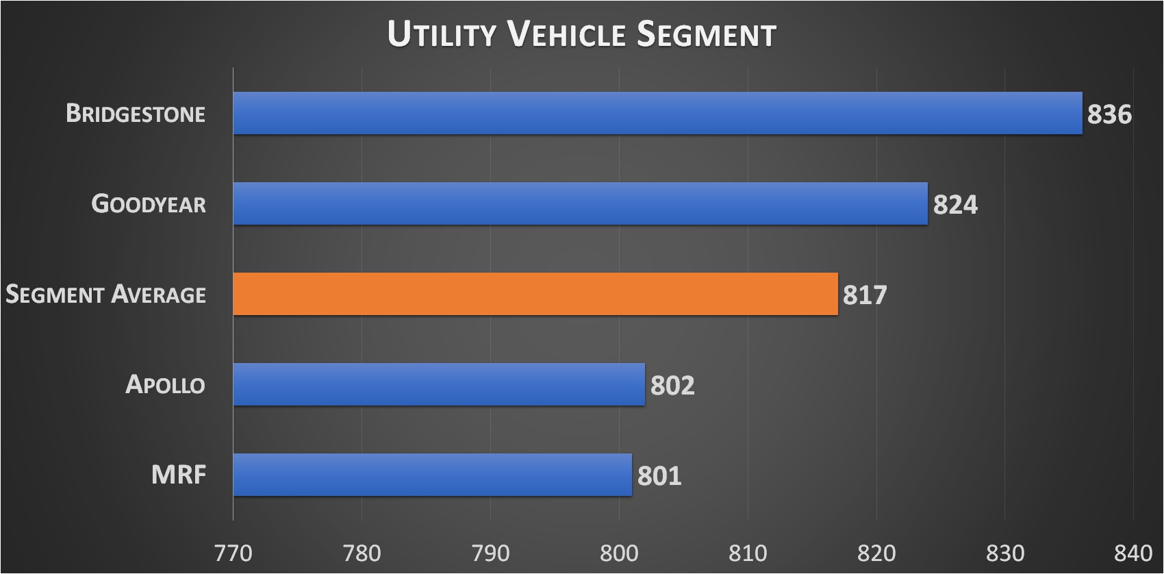 On a scale of 1,000, the Indian arm of the Japanese tyre manufacturer scored 861 points in the midsize car segment and 836 points in the UV segment. The study, which is in its 19th year, measures satisfaction among original equipment tyre owners during the first 12 to 36 months of ownership across four factors – wear; ride; traction/handling; and appearance. Those factors have been listed in order of their importance.