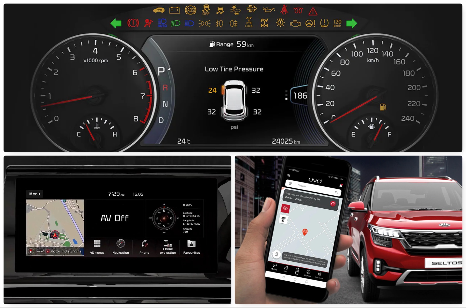 Over to the list of features. As has become the norm of any newcomer in the industry, the Seltos will introduce a number of segment-first features. That list includes a 10.25-inch touchscreen infotainment system with Apple CarPlay and Android Auto, an 8-speaker Bose sound system, a head-up display, a built-in air purifier, USB charging ports for rear seats, a 7.0-inch display within the instrument cluster and UVO technology. Kia says UVO will offer a total of 37 connected car features, bucketed into five categories – Safety & Security, Navigation, Remote Control, Convenience and Vehicle Management. Yes! That is more or less the same as what Hyundai BlueLink offers.