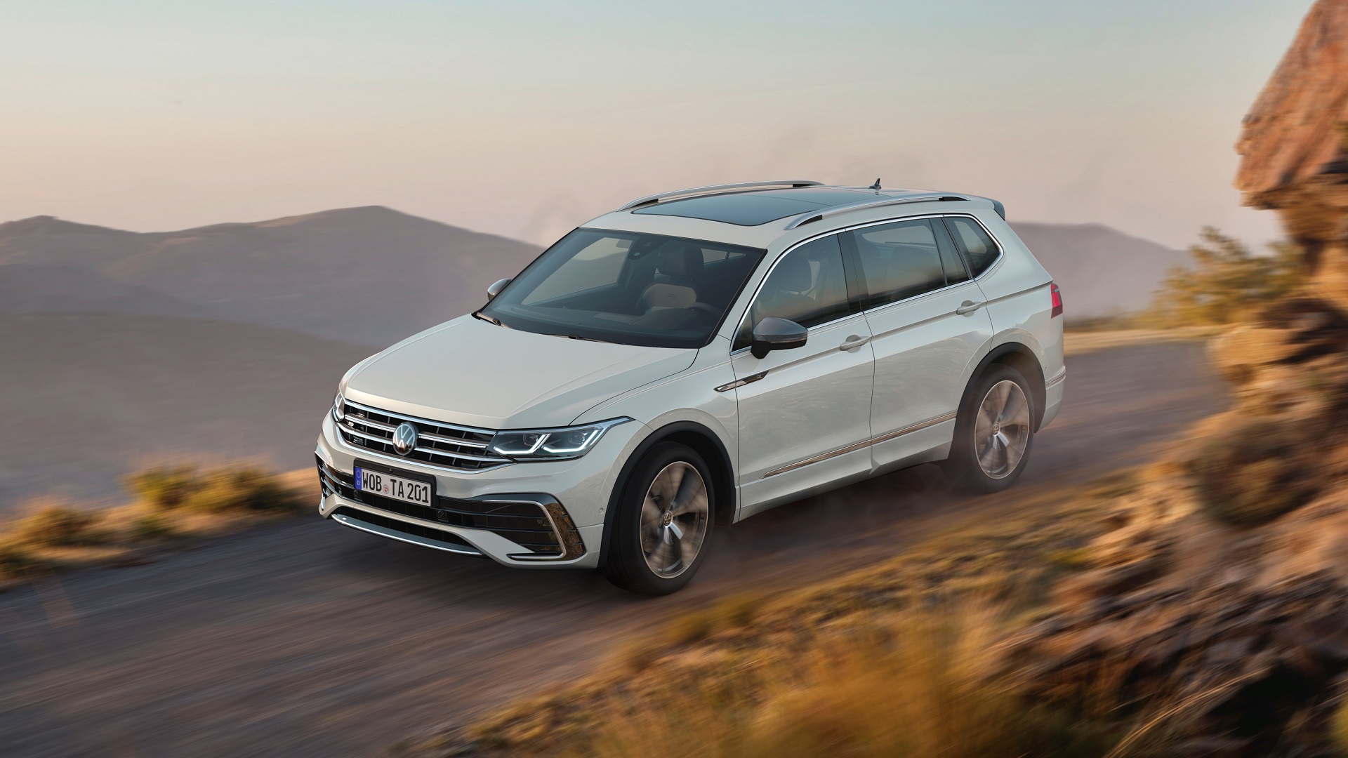 The face is all new. There’s a set of sleeker headlamps that, for the first time, can be equipped with Volkswagen’s IQ.LIGHT LED Matrix technology. The SUV also get the “sweeping” indicator function, new VW logo, a more prominent grille, new front bumper and new wheels. Flanking the VW logo are two light strips that ride on the grille slats. As a result of those changes at the front, the Tiguan Allspace has grown 22mm in length.